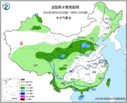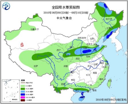 中新网8月9日电 据中央气象台预报,未来三天,中国大部地区将会出现小到中雨或阵雨天气,其中,甘肃南部、宁夏大部、陕西中北部、东北地区东部、华北南部、山东中北部、华南南部沿海、海南等地有大雨或暴雨;上述部分地区并伴有短时雷雨大风或冰雹等强对流天气。