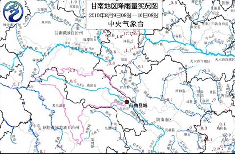 昨日08时至今日08时,除迭部县扎尕那、腊子口及迭部出现5.3毫米、6.3毫米及0.5毫米降雨外,舟曲县城及白龙江上游基本无降雨,今日08时,舟曲县城阴,气温24.2℃,东南风4米/秒。