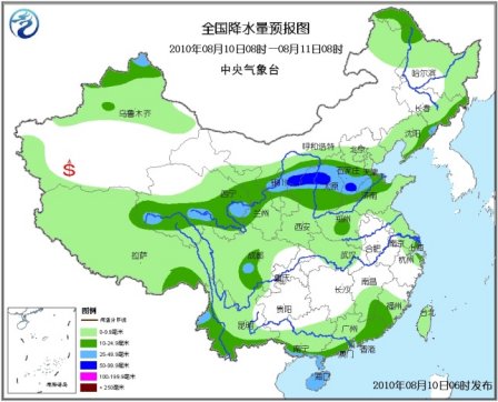 8月10日至13日,北方地区将出现一次强降雨过程。降雨主要集中在西北、华北以及黄淮的部分地区,黄河中游也将出现大雨或暴雨,局地大暴雨。甘肃舟曲11日起,也将出现较强降雨,对抢险救援不利。
