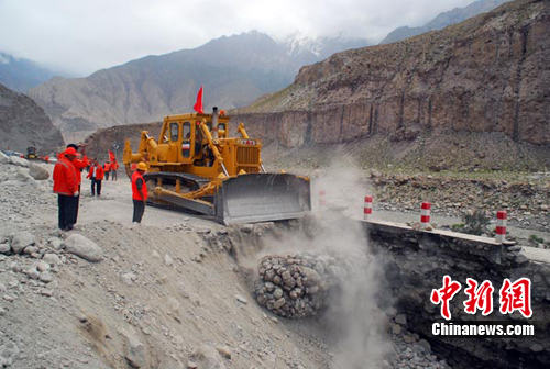 经8个多小时的奋战,抢险人员在山坡中开辟出第一条便道,使被困在盖孜边防检查站下游的小车勉强通过。喀什公路总段党委副书记、总段长何平表示,融雪性的水毁使喀什公路总段公路有17处遭到损毁,其中有一座桥被严重损毁。如果这几天不出现强降雨或暴雨,喀什公路总段在6-7天之内可打通中巴公路。
