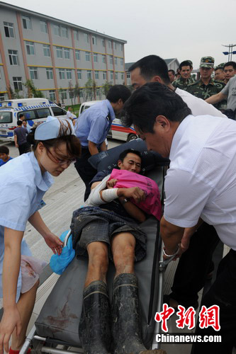 中新网成都8月13日电(记者杨杰)记者从四川省绵竹市委宣传部了解到,赶赴清平灾区救援的第一架救援直升机于13日13时52分顺利降落在绵竹汉旺中学操场上,随机救出的4名伤员被立即送往绵竹市人民医院急救。