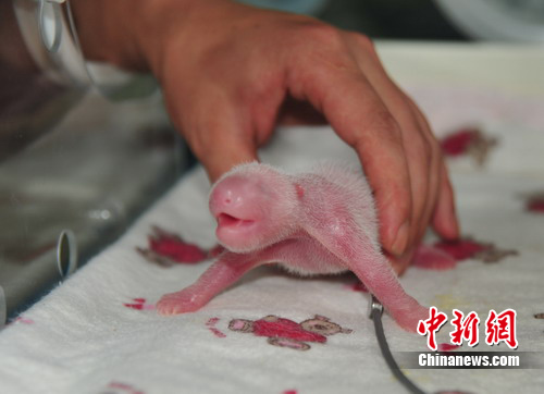中新网成都8月13日电(衡毅 杨杰)曾创下孕期最长、春季产仔等多项吉尼斯纪录的北京动物园大熊猫“吉妮”,13日在卧龙中国保护大熊猫研究中心生下一只幼仔。经专家鉴定,这只幼仔系雌性,出生体重125.1克,叫声洪亮,活力较好,目前母女平安。