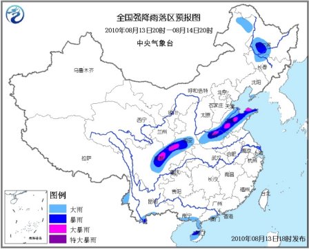 中新网8月13日电 据中央气象台消息,中央气象台8月13日18时继续发布暴雨黄色预警:8月13日20时到8月14日20时,四川盆地西部和北部、甘肃东南部、陕西南部、河南中北部、山东大部以及广西南部、广东南部、海南大部、云南西部和南部、内蒙古东北部、黑龙江西南部、吉林西北部、辽东半岛等地的部分地区有大雨或暴雨,其中,四川盆地西北部、陕西西南部、河南东北部、山东中部和东北部等地的局部有大暴雨;上述地区局地并伴有短时雷雨大风等强对流天气。