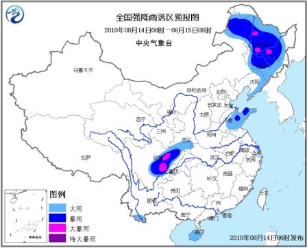 其中,四川盆地西部、黑龙江南部和西部等地的局部有大暴雨;上述地区局地并伴有短时雷雨大风等强对流天气。