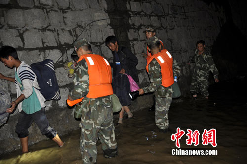 中新网汶川8月15日电(郭永全 张浪)14日19时30分,阿坝消防官兵接到群众报警称:彻底关往汶川县城方向一公里处有滞留群众上千人,请求紧急救援。