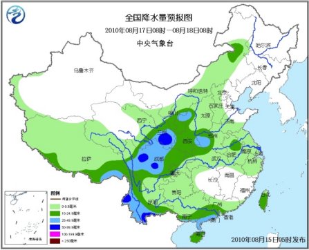 16日,舟曲县及白龙江流域多云转小到中雨、局地有大雨,累积降雨量一般有5~15毫米,局部地区降雨量有20~30毫米。