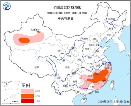 中新网8月15日电 据中央气象台消息,中央气象台8月15日18时继续发布高温黄色预警:预计,明天白天,贵州东部、湖南中南部、江西、浙江、江苏南部、上海、福建、广东东部、广西东北部、台湾北部等地有35~37℃的高温天气,其中,湖南南部、江西中部、浙江西南部、福建西北部等地的部分地区气温可达38℃。