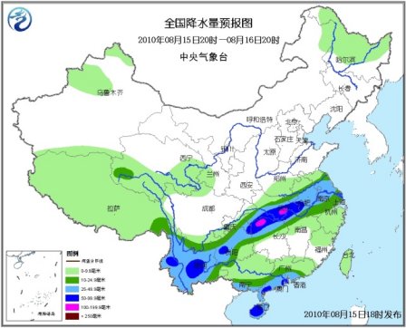 中新网8月15日电 据中央气象台预报,未来三天,新疆西部和南部山区、西藏、青海中南部、西北地区东部、内蒙古中东部、东北西部、华北、黄淮、江淮、江南、华南及西南地区将有小到中雨或阵雨天气,其中,四川中北部、甘肃东南部、陕西中部、山西中南部、河北西南部、河南西北部、湖北南部和东部、湖南北部、安徽中部、贵州中部、云南大部、华南沿海、海南、西藏东南部等地的部分地区有大雨或暴雨,湖北东南部、湖南西北部等地的局部地区有大暴雨;上述部分地区并伴有短时雷雨大风或冰雹等强对流天气。