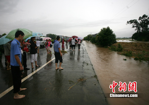 据介绍,眉山市东坡区、丹棱、洪雅、彭山遭遇暴雨到大暴雨,个别地方为特大暴雨。其中东坡区黄莲埂水库200.4mm、杨水碾162.5 mm、两河口水库141.7 mm,彭山县保胜121.8 mm,丹棱县城区137.6 mm,党仲水库124mm,丹棱县石桥乡135mm,中观山120mm,梅湾120.5mm,东风106.8mm,双桥镇105mm,胜利100m,仁寿县黑龙滩水库125.7 mm.14时岷江彭山站水位425.74米,流量6290立方米每秒,青衣江洪雅站水位455.22米流量7700立方米每秒。