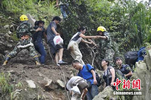 中新网汶川8月20日电(张浪 郭永全)四川阿坝州汶川消防大队映秀消防站官兵20日打通救援通道,成功解救了被困于映秀某山上的1000余名受灾民众。