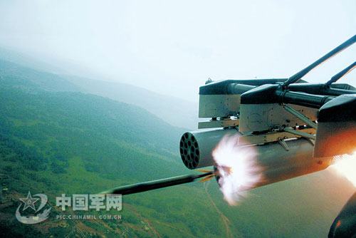 半空中一声惊雷,一枚枚火箭弹像火龙出巢直刺目标。同时,直升机迅速爬升转向离开攻击区域。通过热成像仪和目标追踪系统,驾驶舱里的电子屏幕上地面目标靶清晰可见,只见火箭弹准确击中靶标,扬起漫天烟尘。