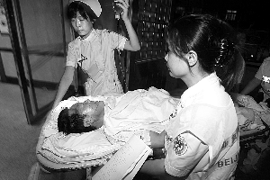 昨晚7时30分,北大三院门口五六辆救护车分别开进大门,多名保安把守大门。医院工作人员将伤者送进抢救室接受救治,伤员情况较好。