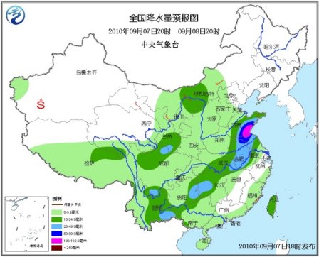 中新网9月7日电 据中央气象台预报,未来三天,全国降水范围较大,其中,山东东部和南部、安徽北部、江苏北部、湖北东部和西南部、湖南北部、四川中东部、重庆大部、云南东部、甘肃东南部、陕西南部、福建中南部、广东东部及台湾等地有大雨或暴雨,局部地区有大暴雨,上述部分地区并伴有短时雷雨大风等强对流天气。