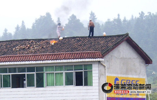 此时,三楼的罗志凤(钟如奎母亲)、叶忠诚(钟如奎大伯)两人提了小桶汽油爬上三楼屋顶,快速沿着屋脊泼洒汽油,叶忠诚点燃了屋脊上的屋椽进行恐吓。由于风力的作用,吹溅起的火星点燃了叶忠诚身上衣服。叶忠诚慌忙自救,并将着火的衣服脱掉甩出去时,却不慎点着身边的罗志凤。罗志凤也连忙脱掉被点着的衣服,两人互救身上的火才扑灭。