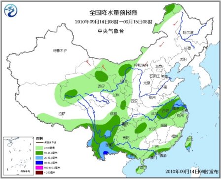 14日08时至15日08时,西藏南部、青海西部和北部、甘肃大部、宁夏、陕西西部、内蒙古西部和东北部、黑龙江西北部、江淮、江汉东部、江南中北部、华南大部以及西南地区大部有小到中雨或阵雨,其中,江苏中南部、川西高原南部、云南西部和南部、广西西南部、广东珠江口地区、台湾南部等地的部分地区有大雨;上述地区局部并伴有短时雷雨大风或冰雹等强对流天气。新疆东部和南部、甘肃西部、内蒙古大部有4~6级风,新疆山口地区风力可达7~9级,南疆盆地的部分地区有扬沙或浮尘天气。黄海南部、东海北部有4~5级东北风转东南风;东海南部有4~6级西南风;台湾以东洋面、南海中南部有4~6级东南风;台湾以南海域、南海北部有4~6级偏东风。