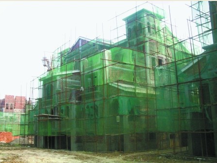 小区进门处,硕大的工程规划图引起了记者的注意:这个小区的规划是成栋的联排别墅,广告宣传语标有‘西班牙风格别墅’字样。小区内建筑工人正在施工。