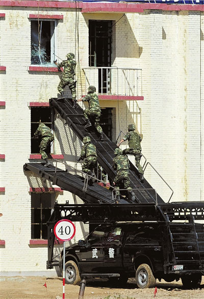北京警方针对菲律宾人质事件进行反劫持演练(图)(5)