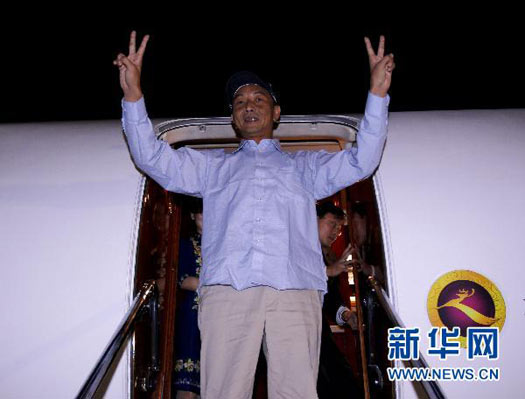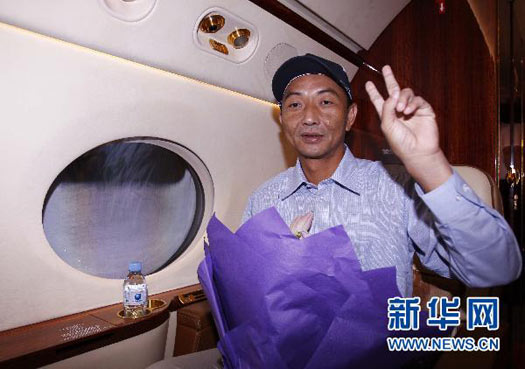 北京时间9月25日1时12分,由外交部和农业部组成的联合工作组已接护中国渔船船长詹其雄,乘坐中国政府包机启程回国。