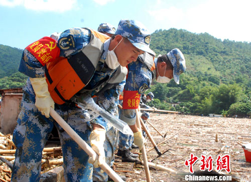 中新网高州9月26日电 (肖德伦 徐苗波)南海舰队某陆战旅在25日派出175名官兵、40辆工程车辆的基础上,今天又增派200名陆战队员,紧急奔赴100多公里赶赴茂名市抢险救灾。