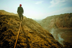 “煤分不同的自燃倾向性,堆在外面的煤矸石,地下的煤层,遇到空气后,都会自然氧化,温度积累到一定程度,就开始燃烧。”赵铁雄说。