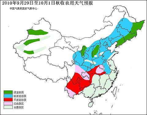 秋收秋种农用天气预报(2010年9月29日~10月1日)