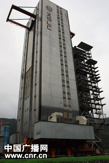 幽静的山谷中,即将承担嫦娥二号卫星发射任务的2号发射塔就在记者面前,在这里,记者做得最多的动作就是——仰起头,仰望这座高塔。