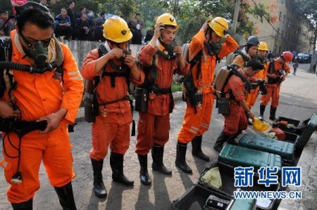 河南平禹煤电有限公司四矿并不宽敞的院子里,密密麻麻地停放着近百辆警车、救护车、救援车。30多名救护人员在井口整装待命,随时准备替换井下正在超负荷工作的矿山救护队员。他们6点多钟就冲向事故现场,至今仍在全力搜寻17名生死不明的矿工。