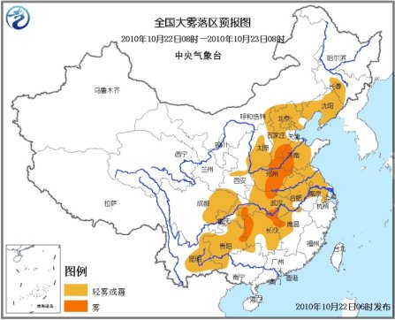 中新网10月22日电 据中央气象台消息,中央气象台10月22日06时继续发布大雾蓝色预警: