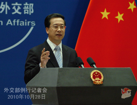 中新网10月28日电 据外交部网站消息,2010年10月28日,中国外交部发言人马朝旭主持例行记者会。答问如下。