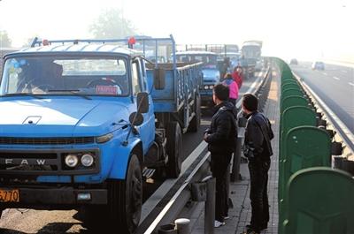 “我们俱乐部10来辆车一起出去活动,前面的车在事故发生前就通过了,结果我们俩的车被阻在后面了,这儿都成了停车场了。”张女士和刘先生两人的车从早上5点40分就被堵,他们在车里干待了几个小时,路上的车一直就没动过。