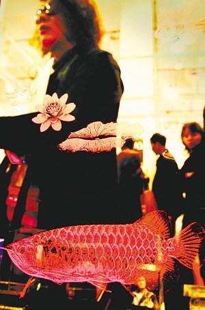 图为光博会上的激光电子立体雕刻机雕出美轮美奂的图案,非常有艺术气息,引来不少商家的兴趣。 记者 马青 摄