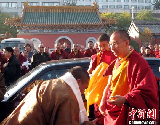 中国佛教协会副会长班禅额尔德尼·确吉杰布当天上午接受了第六届高级学衔获得者的朝拜。