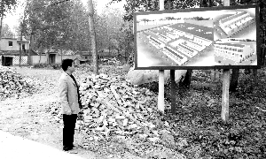 泗县小冒庄村民在看未来小区效果图。当地村民已被集中上楼。本报记者 孙旭阳 摄