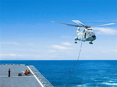 据介绍,直升机海上悬停加油是一项高难课目,可以利用这种方式提升舰载直升机的再次出动速度。(杨琼 王凯)