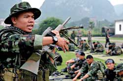 10月19日傍晚,代号“突击—2010”中泰陆军特种部队联合反恐训练在广西桂林落下帷幕。这次联合训练为期15天,分展示交流、混编同训和综合演练3个阶段,主要围绕城市反恐基础技能训练、混编分队战术训练等课目进行。中泰双方各派出60人的特种分队参加联训。这是中泰双方举行的第3次陆军联合训练。