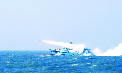 重重电磁迷雾中,一艘身披海洋迷彩的新型导弹快艇踏浪驰骋。突然,烈焰腾空,霹雳震天,导弹从艇首呼啸而出,直扑远海纵深目标。顷刻间,“敌”舰灰飞烟灭……