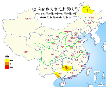 此外,干燥少雨的天气同样也使得森林火险气象等级升高。中央气象台预计,11月9日20时至11月10日20时,黑龙江西北部、内蒙古东北部、湖南南部、广东北部、广西东北部和西南部的部分地区森林火险气象等级较高,其中,湖南西南部、广西东北部和西南部的局部地区森林火险气象等级高,请当地有关部门注意防火。