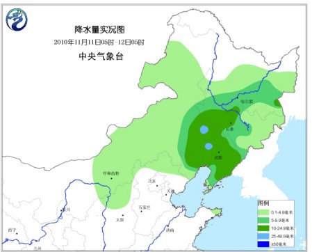 据中央气象台监测显示,昨日,内蒙古东南部和东北地区中南部出现大到暴雪。其中,辽宁大部由雨转雪,降水量10~20毫米。今晨06时,内蒙古东部和黑龙江南部积雪深度有2~5厘米,内蒙古东南部和黑龙江东南部达10~15厘米,黑龙江绥芬河27厘米。