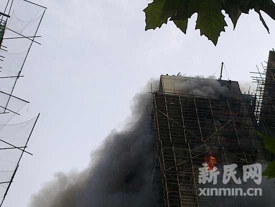 16时20分,大火持续到现在尚未被扑灭,大楼内仍有居民尚未逃出,顶楼还有不少被困居民在等待救援。新民网记者在现场看见,经过大火猛烈的炙烤,已经有脚手架在往下掉落了,现场十分危险。