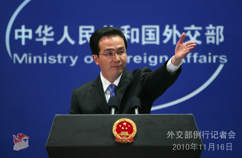 2010年11月16日,外交部发言人洪磊主持例行记者会,就巴以和谈、几内亚大选、中俄印外长会晤等问题回答了记者提问。答问全文如下: