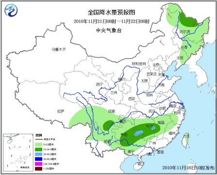 21日08时至22日08时,东北地区有小到中雪,局部地区有大雪或暴雪;西南地区东部、江南、华南西部有小到中雨(雪),局部地区有大雨。