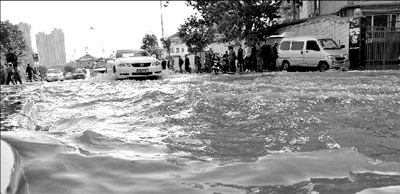 东风路水深及膝,数百行人被阻行程