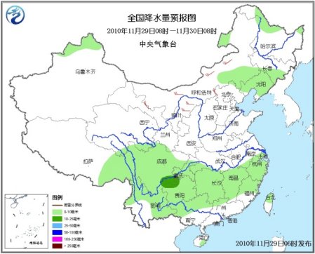 29日08时至30日08时,新疆北部山区、西藏东部、青海东南部、川西高原大部、内蒙古东部的部分地区、黑龙江北部、吉林南部、辽宁大部等地有小到中雪或雨夹雪;西南地区大部、江南大部、广西北部、海南东南部、台湾北部等地有小到中雨或阵雨。甘肃西部、内蒙古中西部等地有4~6级风。渤海、黄海北部海域将有5~6级旋转风;东海南部海域将有5~6级偏东风转东南风、局部海域风力可达7级;台湾海峡、台湾以南海域、南海北部和中部海域将有5~7级东北风。