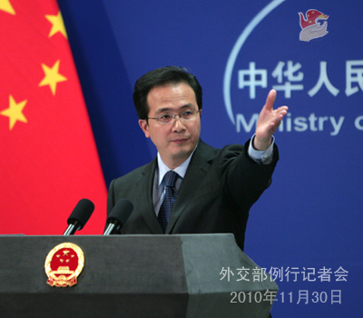 2010年11月30日,外交部发言人洪磊主持例行记者会。