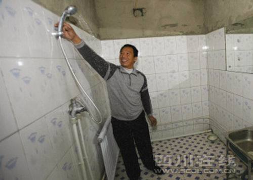 12月11日,黑心工厂老板李兴林在展示厂里的淋浴设备,而记者调查得知 “包身工”两年间从未洗过澡。