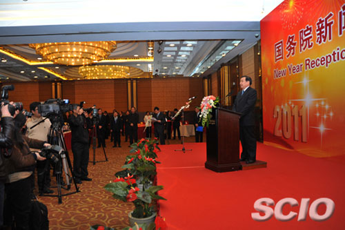 王晨在16日晚国新办2011年新年招待会上作出上述表示。他在致辞中说,2010年,面对复杂多变的国内外形势,中共中央、国务院团结带领全国各族人民坚持科学发展,加快经济发展方式转变,保持了经济平稳较快发展的好势头。中国成功举办了上海世博会、广州亚运会等一系列重大国际活动,国家文化软实力上升,国际地位和影响力显著提高,向世界展现出一个繁荣发展、民主进步、文明开放、和平和谐的国家形象。