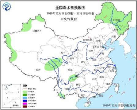 17日08时至18日08时,新疆北部和西南部、青海东南部、西藏东北部和西部、内蒙古东北部、黑龙江、吉林大部等地的部分地区有小到中雪(雨)或雨夹雪;四川东南部、云南南部、海南东南部等地有小雨或阵雨。内蒙古大部等地有4~6级风。南海中部和南部海域将有7~8级、阵风9~10级的东北风;台湾海峡、南海东北部海域、台湾以东洋面和以南海域将有6~7级、阵风8~9级的东北风。