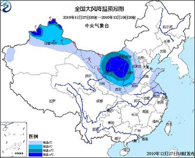 中央气象台12月27日18时发布寒潮蓝色预警:
