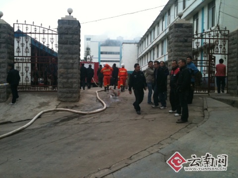 今日上午10点10分左右,在昆明金马寺官渡二中后面一生物化学制品厂发生爆炸。厂内一楼房从4层楼窜出几十米高的火苗、浓烟。爆炸发生后,附近居民看到有许多人从该楼的3楼跳下逃生。目前,救护车和消防车已赶到现场进行救助。