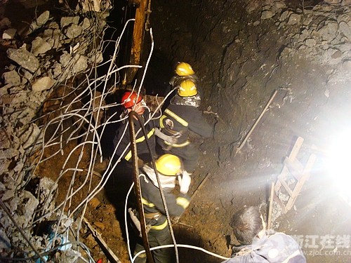 10分钟后,泥土里露出一顶安全帽,挖掘机立即停止作业,救援人员改用铁锹等工具进行挖掘。30日凌晨0时01分,泥土里露出了1名被埋工人的面部,救援人员立即改用双手刨,用腰斧挖,随后其他2名被困工人的头部也都露出。